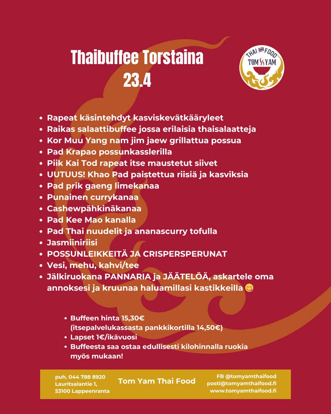 Thaimaalainen lounas Lappeenrannassa – syö buffeesta niin paljon kuin jaksat!
